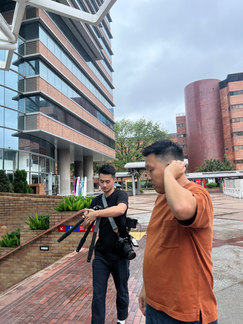 當日我哋好有幸邀請了燈光拍攝組、化妝組、音響收音組、拍攝組,配合演員組及導演組別,大家都能夠發揮自己的所能,完成拍攝。拍攝當天,下大雨,而拍攝內容涉及戶外環境,因此我們要抓緊時間,time control變成一個非常重要的元素。我們對於每一格畫面,當然很有執着,但是也要平衡各方面的因素及時間的影響,只能夠在中間搵一個平衡,但有賴之前所做的準備功夫,拍攝團隊基本上只需要跟着storyboard來拍攝便可以了,不用害怕會拍漏shot。
